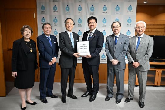 2025年11月25日、日本俳優協会と伝統歌舞伎保存会を代表して、片岡仁左衛門(日本俳優協会専務理事)、中村梅玉(伝統歌舞伎保存会副会長)、中村歌六(監事)、中村萬壽(理事)、水谷八重子(理事)が文部科学省を訪れ、松本洋平文部科学大臣に国立劇場早期再開場を求める要望書と署名2,545筆を提出しました。
